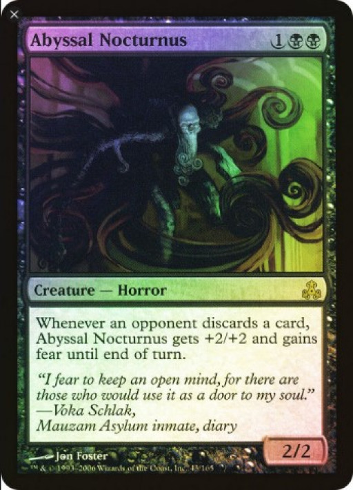 So what is more horrifying than a 0/4 attacking you? The fact that the 0/4 is about to kill you when put into a mill deck or specifically a Phenax deck can be absolutely brutal. It is actually quite easy to get 20 cards into your opponent's graveyard and then you just pull this guy out and absolutely wreak havoc on opponents since this creature also has the Fear ability spelled out exactly for you.