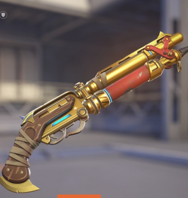 Junkrat is the same as Mei’s weapon, simple yet I love the fact that the majority of the skins are golden as well. Although I wish the frags had been gold when I shot it out, It would look cool or his Rip-Tire, which is a missed opportunity in my opinion.