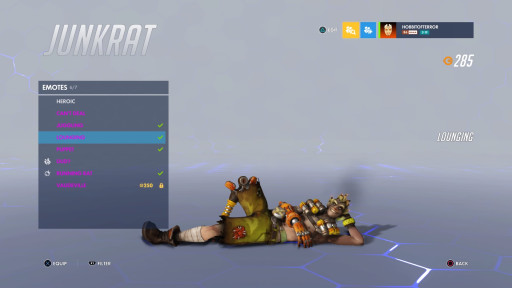 Another sitting emote that is nowhere as epic or cool as “Game On” , but it is the way that players have figured out how to be cheeky with this emote that it earns a place on this list. You see, on certain maps like Rialto and Watchpoint: Gibraltar there is a lot of shrubbery near the payload’s path and when a Junkrat does the “Lounging '' emote in said bushes he becomes practically invisible. And this emote will be able to contest the payload for however long it takes for the enemy team to figure out that there is a rat in their midst.
