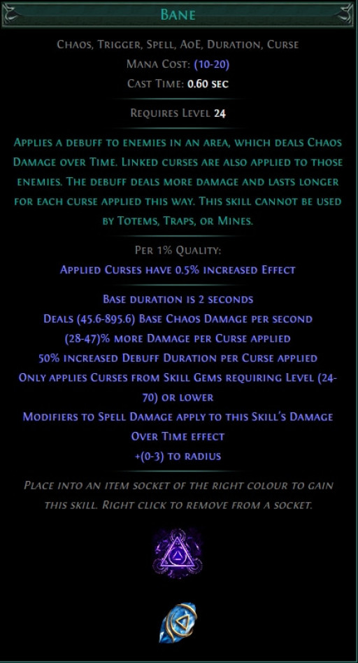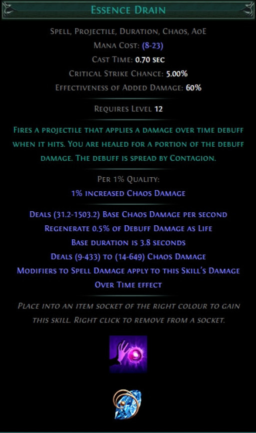 This is one of those builds that remind me of Samara from The Ring films. You crawl out of wells with your wet black hair and drain the life force from your enemies while you watch their faces shrivel to nothing. Ok not exactly, but you get the point. Chaos Damage over Time or DoT Occultist, utilizes three major gems. Essence Drain, Contagion, and Bane. Certainly one of the best solo builds for end-game.