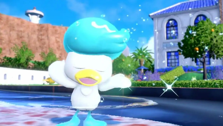 "Quaxly is the Water type starter of Paldea. Not the best with Speed or Defense, but its evolution boasts strong Physical strength."