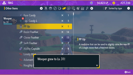 Fuecoco’s HP slightly increased after battling Team Star. It progressed from HP 31 to HP 34.