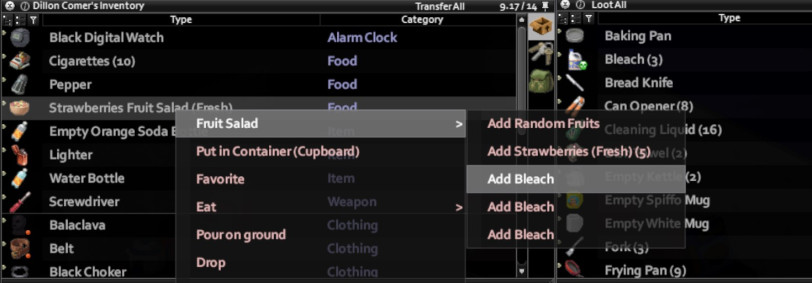That being said, like Pie, it has a quick shelf life before it starts to become bad, which can lead you to illness if you consume it as a rotten cake. In regards to your hunger bar, in Zomboid’s flesh eating, zombie-filled world, the big bonuses Cake brings can energize your character making it a must-have should you bring in the necessary ingredients to make it, as it’s a tedious process, with the extra step of fighting zombies at the side for sourcing said ingredients.