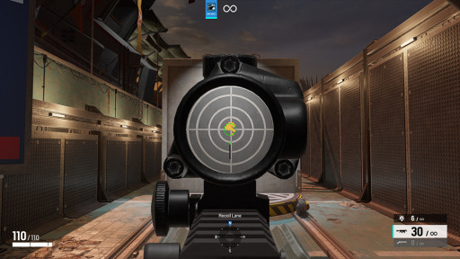 The same goes for the defenders who would be trying to return fire at Buck. Now, the problem for those defenders is that it could be hard for them to see Buck clearly through those metal beams, and the suppressor on Buck’s C8-SFW will make it even harder. That’s because the suppressor will hide the C8-SFW's directional threat indicator and its muzzle flash. That means unless they see Buck himself, they won’t have a visual cue from Buck shooting at them. The suppressor will also silence the C8-SFW's gunshot sound, making it hard for the defenders to pinpoint Buck’s location through sound cues.