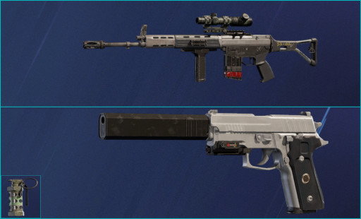 1. Type-89 with Scope 2.0x, Flash Hider, and Vertical Grip + P229 with Suppressor and Laser + Stun Grenade