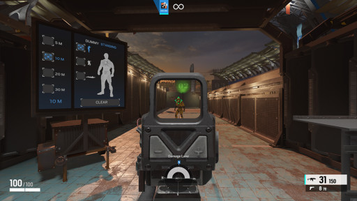 And now we’re really getting into the great sights category. The Red Dot C is the second best 1x sight in the game right now because it offers a really good view of the target. If you compare its screenshot to the rest of the previous entries, with the Red Dot C, you can almost see the entirety of the target. And all the screenshots for the 1.0x sights in this article are from the same level and have the same exact distance.