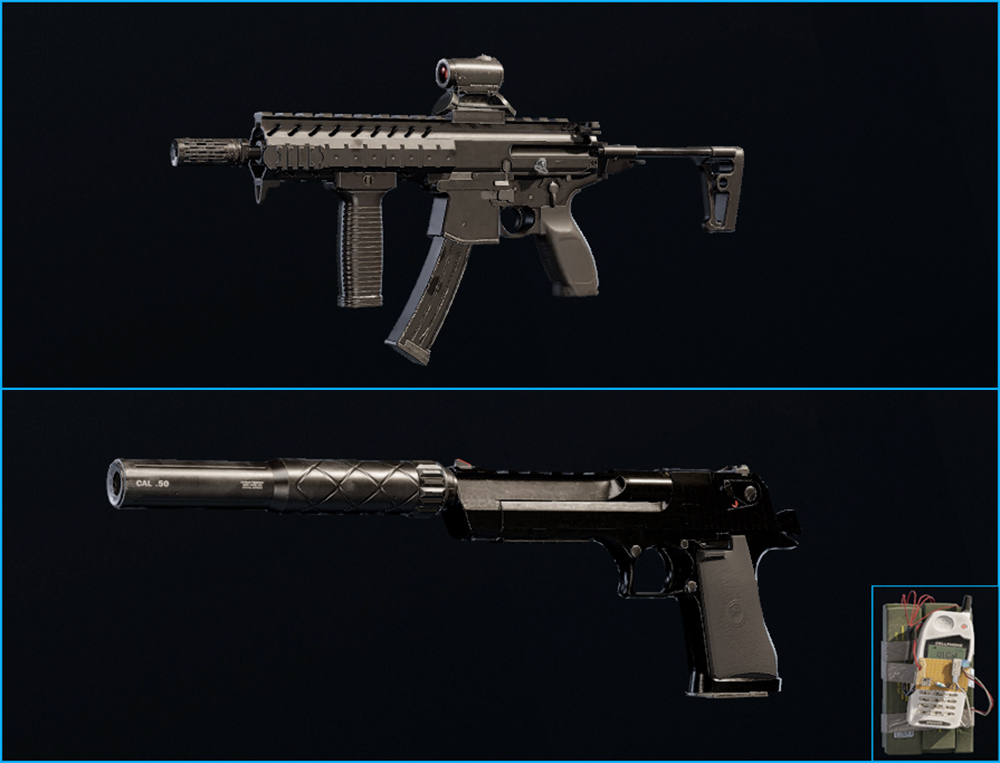 1. MPX with Red Dot, Flash Hider, and Angled Grip + D-50 with Suppressor + Nitro Cell