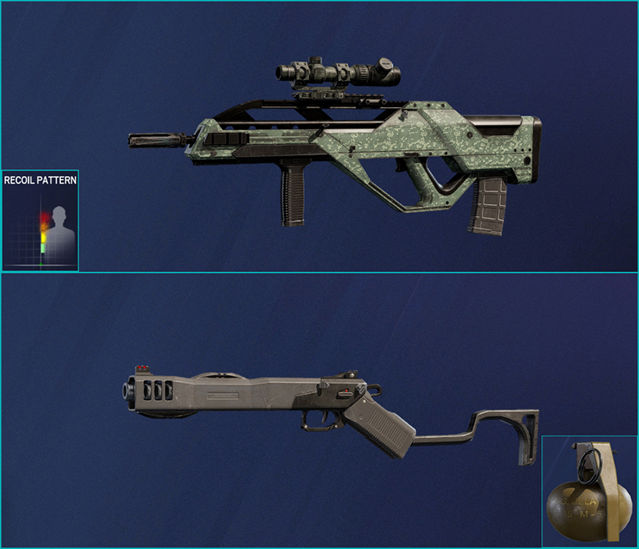 1. Spear .308 with Scope 2.0x, Flash Hider, and Vertical Grip + Gonne-6 + Frag Grenade