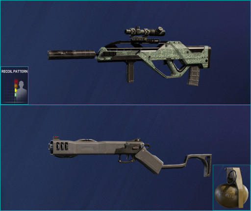 3. SASG-12 with Reflex B and Vertical Grip + PMM with Suppressor + Stun Grenade