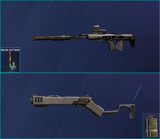 1. OTs-03 with Red Dot A and Suppressor + PMM with Muzzle Brake + Smoke Grenade