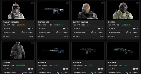 With the Filters function, you can easily go to the category of items that you want to buy or sell. To narrow down your search even more, you can even filter your search through their rarity, the season they became available in, as well as the operator or weapon that they’re usable with. The Marketplace might still be in Beta but it’s very clear that it’s been organized quite neatly and it’s very convenient to use. If you know the name for a specific item that you’re looking for, there is also a search bar where you can easily type the name of the item.