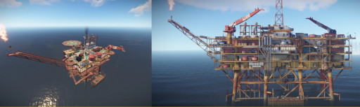 The oil rigs are monuments in rust that could contain loads of guns; thus, they are very contested. The large oil rig is just a larger version of the normal oil rig. In addition, it has double the number of scientists and double the number of crates. Both oil rigs have a special crate called the "Locked Crate." These crates have to be "hacked" by the player before opening. Don’t worry, you just have to press the action button on the crate and wait 15 minutes. These have the highest chance of containing guns in the whole game. On top of that, when you activate the crate, a helicopter will drop off "heavy scientists" on the oil rig, which you have to kill. These NPCs drop a lot of items when killed and also have a higher chance of containing guns. Locked crates not only spawn on the Ol' Rigs, but they can also be dropped by a Chinook helicopter at some monuments.