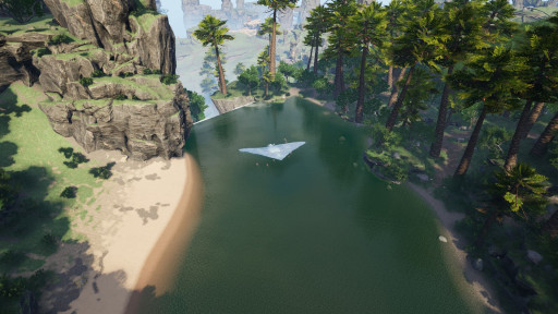 A giant flying manta crossing near a waterfall near the Grass Plains.