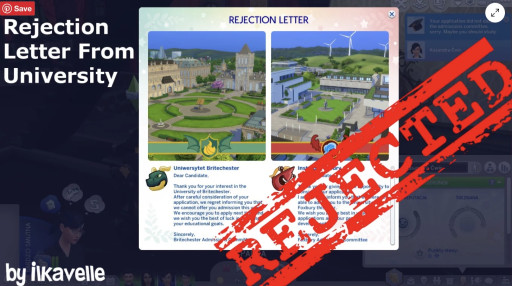 University Rejection Letter details: https://ilkavelle.wixsite.com/simsquest/post/rejection-letter-from-university-possible