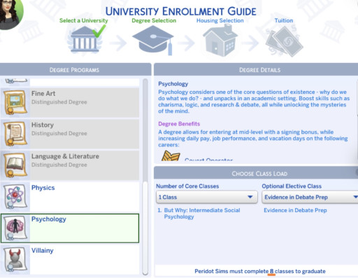 There are four shorter flavours: four credits, six credits, eight credits, and ten credits (the default in-game credit requirement is 12 credits). You can easily cut your degree length in half or two-thirds depending on which flavour you use! This means you'll be able to start your chosen career sooner and earn more money.
