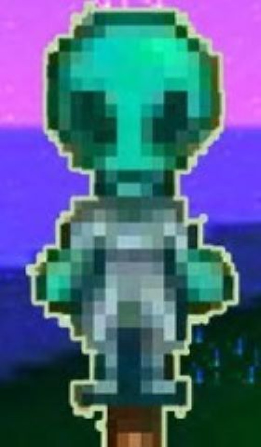 I'm an alien kind of person. I like sci-fi and weird animals. It comes with being autistic, I think. There's something about little green men with big eyes and space onesies that really tickles my fancy. So when I learned of the alien rarecrow, it was the first thing I spent my Casino winnings on. But can you blame me? It's adorable!