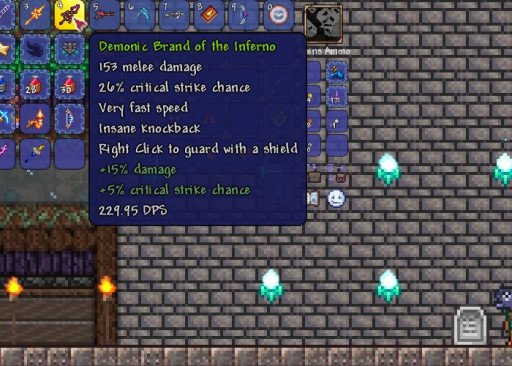 Some mage weapons don't do knockback nor cost a lot of mana to use. That's when the Demonic modifier comes into play. It offers boosts in just damage and critical chance and is a more common modifier to roll on the Reforge menu.