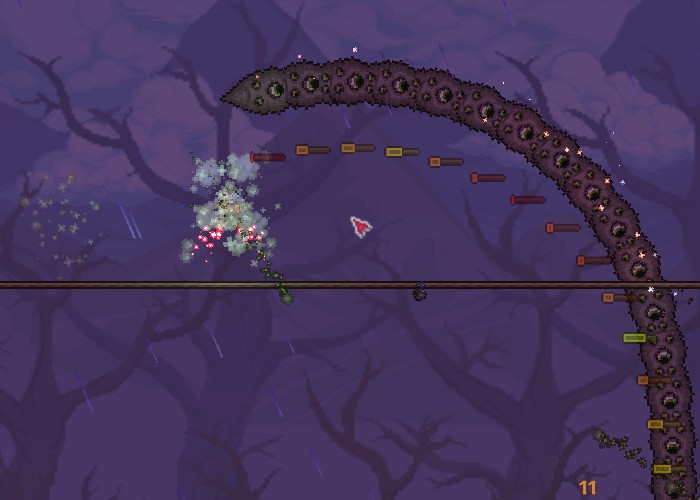 - Given that each segment of the worm has relatively low health (150/210/267 in Classic/Expert/Master modes), you'd be able to whittle them down to dust very easily with this weapon