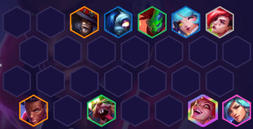 This team revolves around the rapidfire trait, which grants its champions attack speed, with Jinx as the headliner for the rapidfire trait.