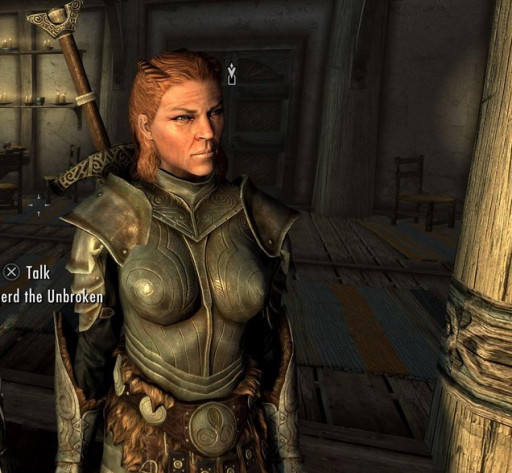 Uthgerd is a proud nordic warrior, who’s completely ready to take care of herself in the world. A commanding presence, you shouldn’t dare challenge her, or insinuate she has an attitude. She can and will fight you. You might lose. But that’s also kind of hot. She has a grudge against the companions, and owns her own home.