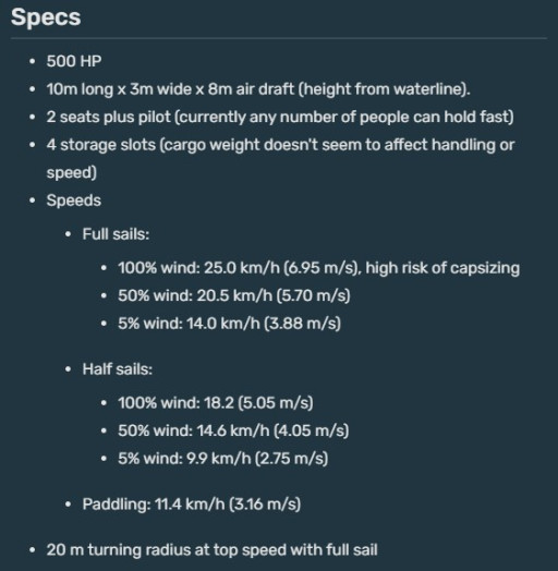Its massive size and utility can fit the entire games’ server population (max of 10 at a time), and could probably carry way more given the same lack of limits to people using ‘hold fast’ to steady in the boat. Assuming that was fixed, this boat carries upwards of 5 people, and that’s with some of the seats being unusable too. This is easily the best boat for many reasons such as the following: