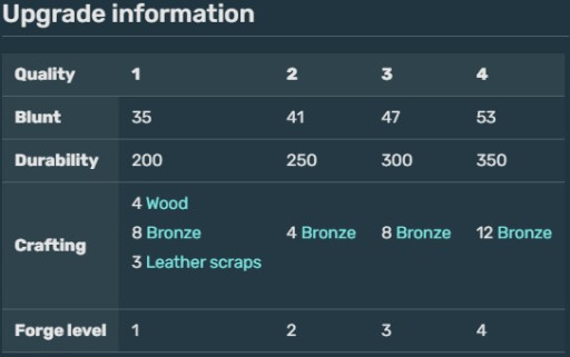 For a detailed look at the Bronze Mace’s stats, you may look at the table or use the key points below.