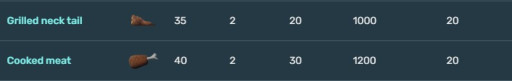 8. Grilled Neck Tail / Cooked Meat: Best Early HP Food Source