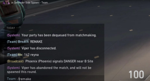 - Step 1: During the first round’s Buy Phase, one of the team members may type /remake in the chatbox. This will trigger a voting system that requires all remaining players to vote.Image