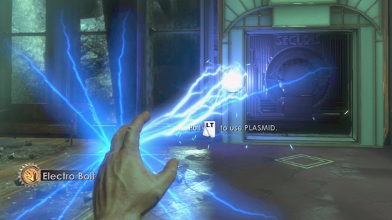 In Bioshock, you can choose your combat modes depending on what or who you are fighting. There are the more “standard” - at least, for Rapture - options like Molotov cocktails and a wide range of guns, for which you can gather ammo. Then there’s the plasmids, and that’s where you can get creative.