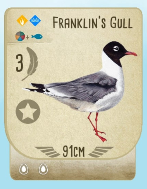 - Star nest: Franklin’s Gull has the special star nest, meaning it can count towards any end-of-round objective or bonus card requiring birds of a certain nest type.