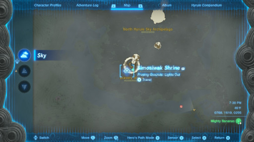 Down below, there is a hot air balloon device. Land on it and use it. It will help you go higher and land on the West Hebra Sky Archipelago near the Ijo-O Shrine.