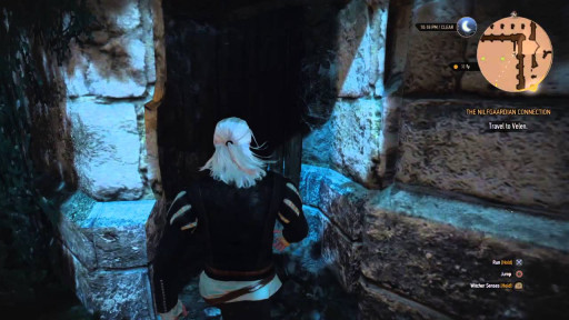 Location : After meeting your old friend ,”your majesty”, at the royal palce of vizima, you will find yourself in the courtyard of the palace. If you go towards the area where a man is sitting and a woman is standing around a round table. Behind them is a wall with protruded stones. If you step close , you`ll see that you can press one of the stones. By pressing it a new room, to your left, will open.