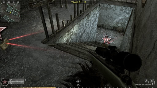 Have a look at the player display. In the top left you see the timer and no. people killed per team. Bottom left we see the compass. Bottom right there is the frag count, along with bullets remaining in clip and magazine. A basic display setup you might think, but did we need much more?