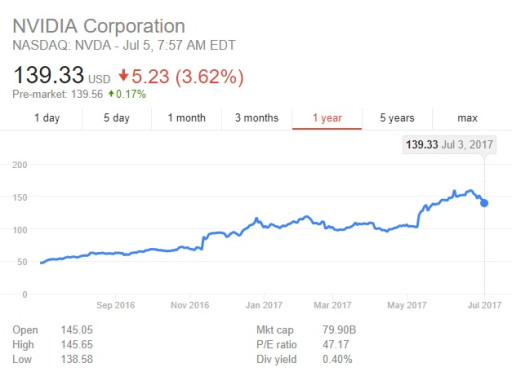 - The price of one share from Nvidia is $139.3, around 9 times larger