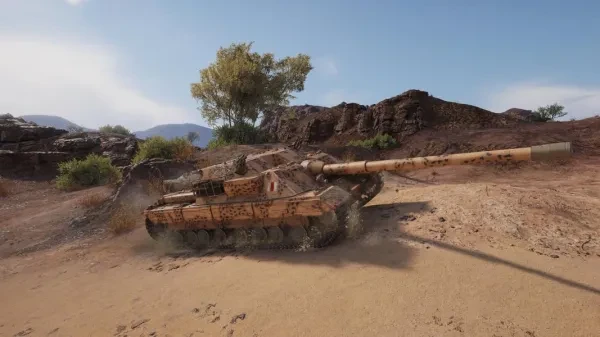 The heavy-hitting gun and thick front armor plates make this tank ideal for long-range sniping from the rear lines, as it lacks the speed and maneuverability for effective close-range combat.