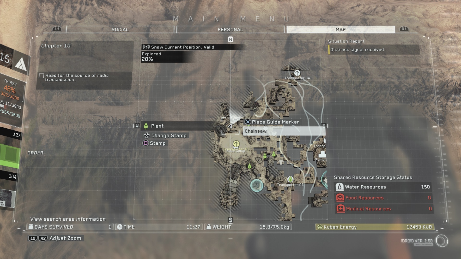 Mother Base has been attacked. Big Boss and Kazuhira Miller have escaped safely. You are asked to stay behind and investigate the wormhole that has appeared. What you find on the other side is like something out of a nightmare. Soldiers reported missing from Mother Base before the attack have become Wanderers. Find out what is happening in this alternate universe, save the soldiers that can still be saved, and fight off hunger and thirst in addition to the zombie-like Wanderers. Will you be able to survive and close the wormhole to ensure the safety of your universe?